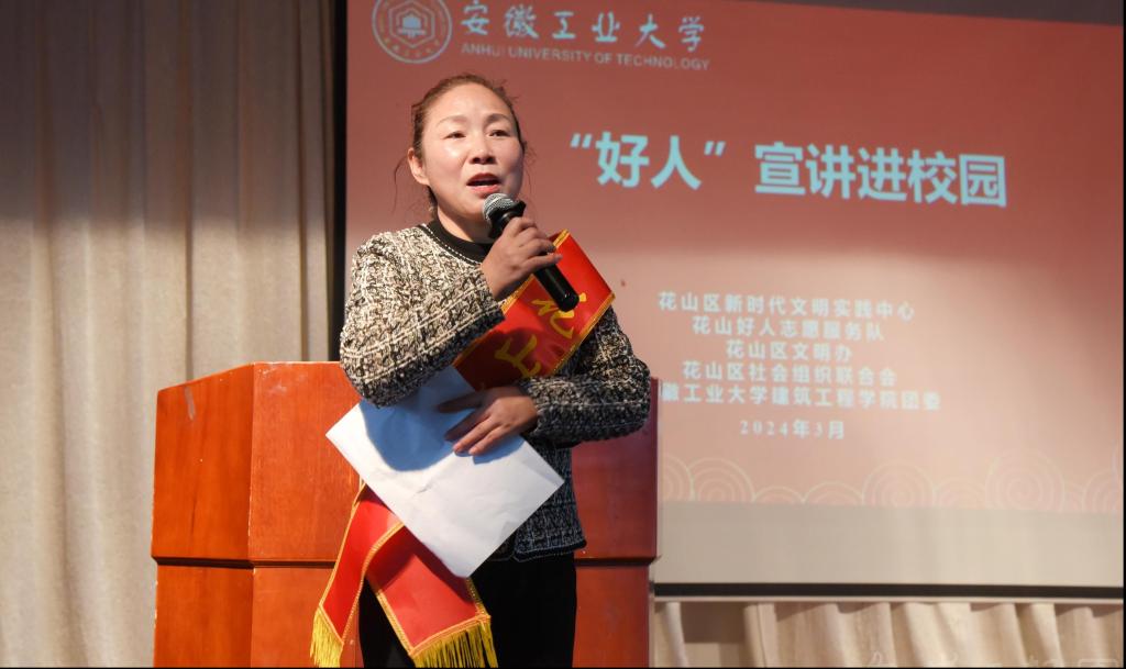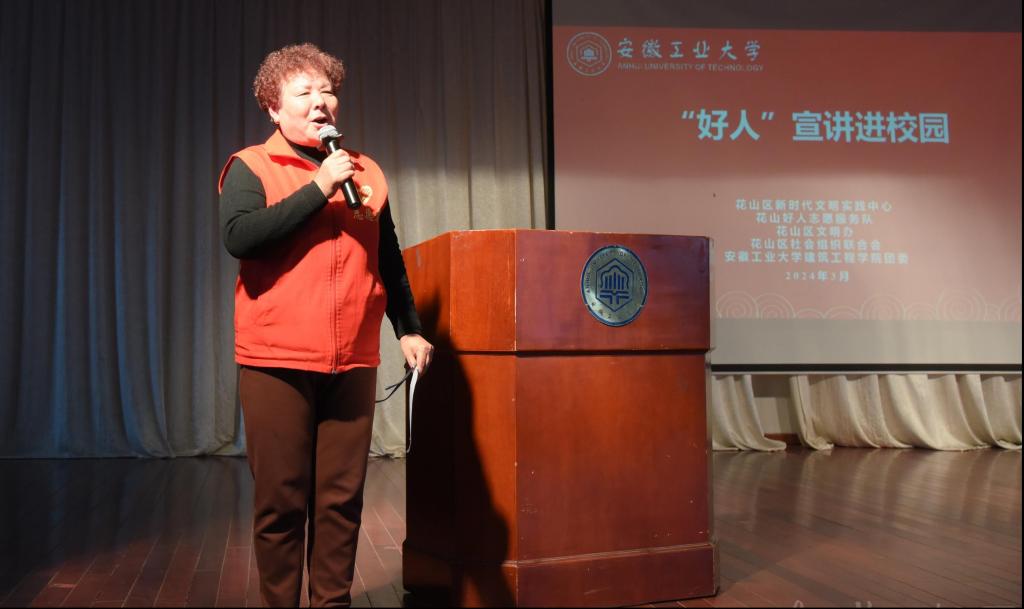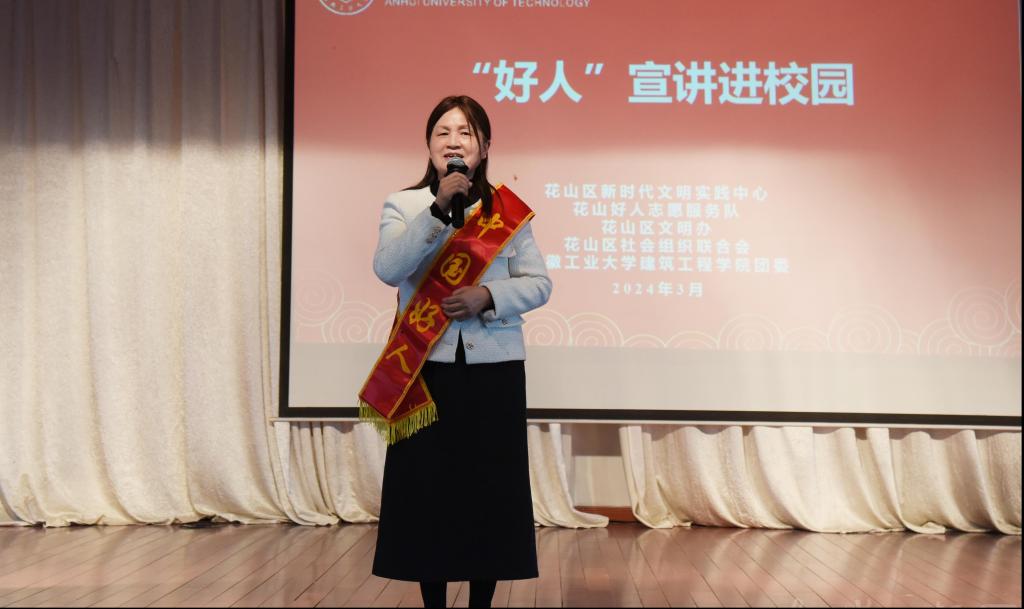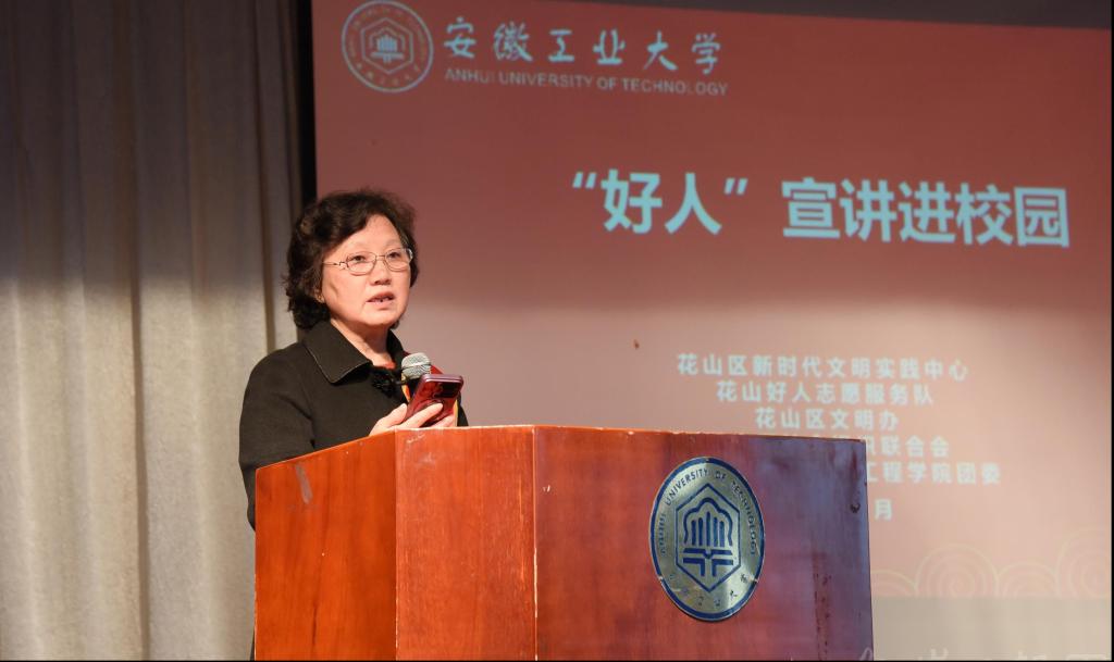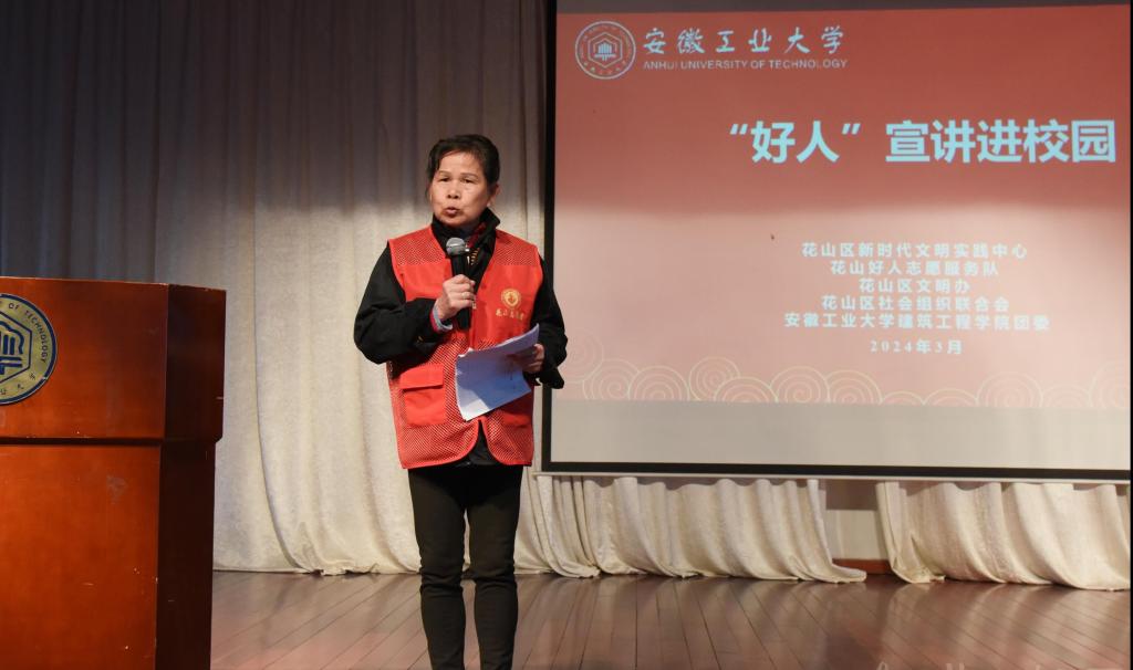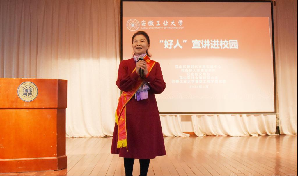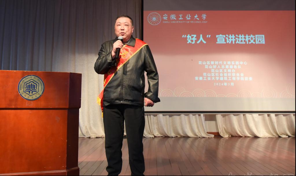 为深入贯彻落实习近平总书记关于弘扬雷锋精神的重要论述,深刻领会雷锋精神的时代内涵,引领广大团员和青年在志愿服务中大力弘扬“奉献、友爱、互助、进步”的志愿精神,3月24日下午,学校联合马鞍山市花山区新时代文明实践中心、花山好人志愿服务队、花山区文明办、花山区社会组织联合会开展“‘好人’宣讲进校园”活动。马鞍山市花山区相关工作人员、博彩