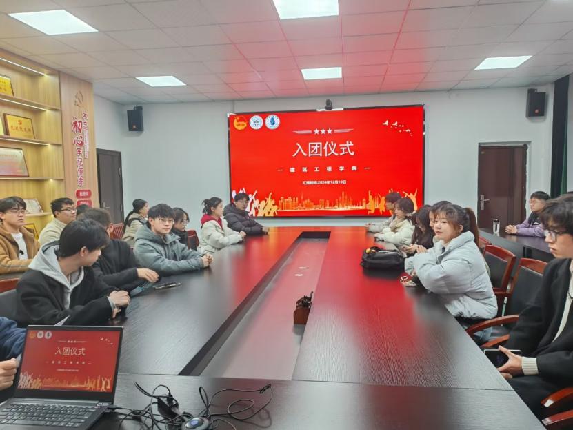 团委举行新团员入团仪式。学院团委书记崔余龙、团委副书记陈奎以及全体新团员参加。