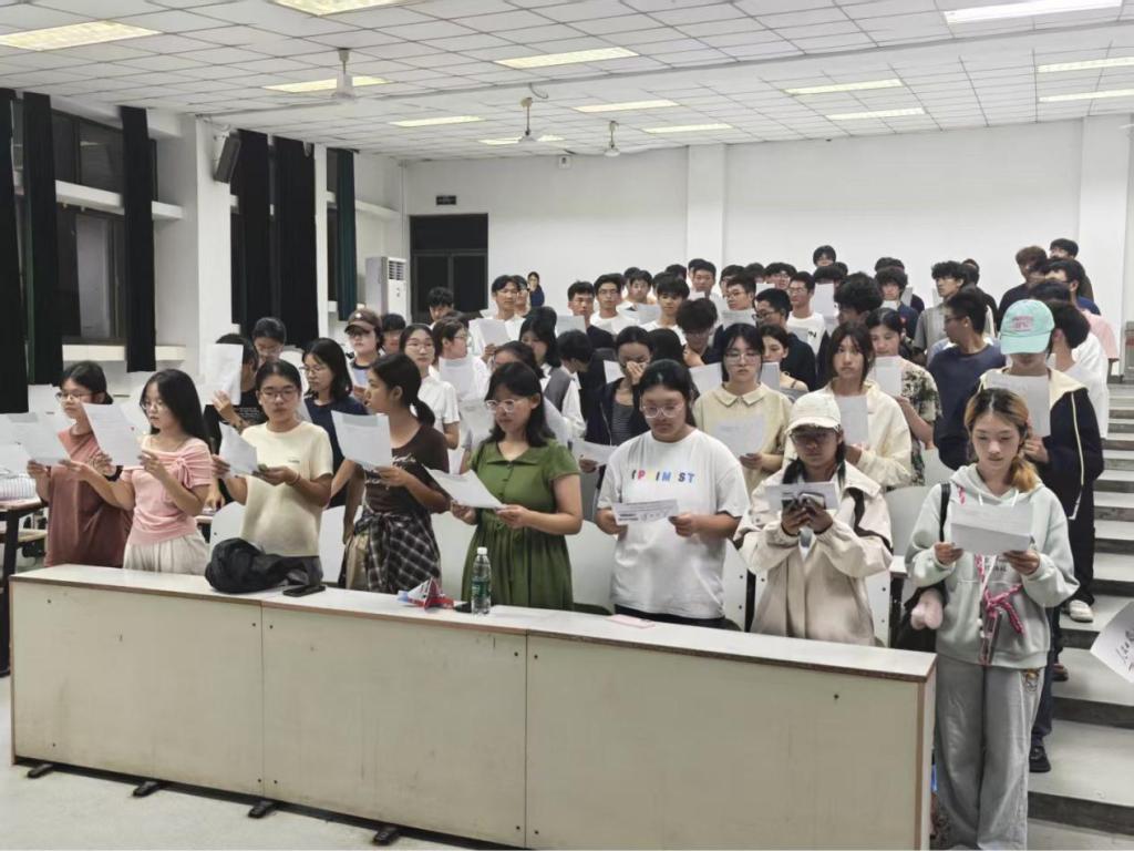 在前期经过充分准备的基础上,“语通中华,文润心田” 晨读活动正式开始,在院学习部同学的带领下,同学们手持晨读资料,精神饱满地诵读经典:时而齐声朗读《诗经》中的千古名句,感受古人的浪漫情怀;时而分组品读唐诗宋词,体会诗人的家国情怀与人生感悟;时而专注学习普通话发音指导资料,相互纠正发音,共同进步。参与活动的学生表示,通过晨读,不仅近距离接触了中华优秀传统文化,提升了文化素养,还在专业的指导下提高了普通话水平,收获满满。