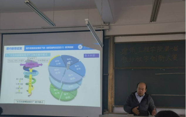 为鼓励教师教育教学改革创新,全面推进课程思政建设,11月20日下午学院在建工北楼505举办了第一届教师教学创新大赛,大赛由教学院长吕忠主持,15名教师参赛,院教学督导组成员担任评委,新进青年教师全程观摩。