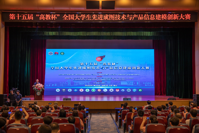 2022年7月29日至8月2日,第十五届“高教杯”全国大学生先进成图技术与产品信息建模创新大赛由中国图学学会制图技术专业委员会、中国图学学会产品信息建模专业委员会、全国大学生先进成图技术与产品信息建模创新大赛组委会、江苏大学联合主办。高教杯是图学类课程最高级别的国家级赛事,2018年被中国高等教育学会列入全国普通高校学科竞赛排行榜,2021位居全国普通高校大学生竞赛排行榜第24位。由于规模大、水平高、参赛人数多,被誉为图学界的“奥林匹克”。本届大赛预赛20余万人参加,省级分区选拔赛2万余人参加,国赛决赛吸引了包括上海交通大学、浙江大学、哈尔滨工业大学、华中科技大学、武汉大学等共有675所学校,1041支代表队,10349名学生,规模再创新高。