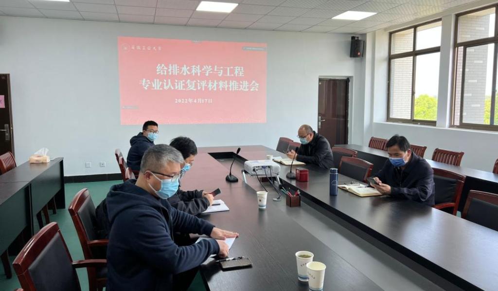 在秀山校区建工北楼310组织召开给排水科学与工程专业评估认证自评报告补充材料推进工作会议,采用线下线上相结合的方式,线上通过腾讯会议参会。学院党政领导班子成员,实验中心主任,学院教学秘书,各系主任、支部书记,学工系统辅导员及市政工程系全体教师参加了会议。会议由副院长曹现雷主持。
