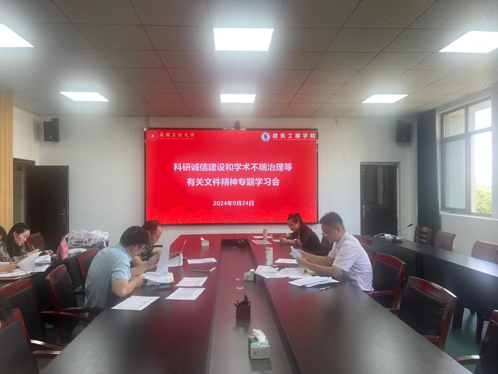 在建工北楼310室组织召开科研诚信和学术不端治理宣传教育专题会议,学院领导班子成员、各系党支部书记参加了会议。