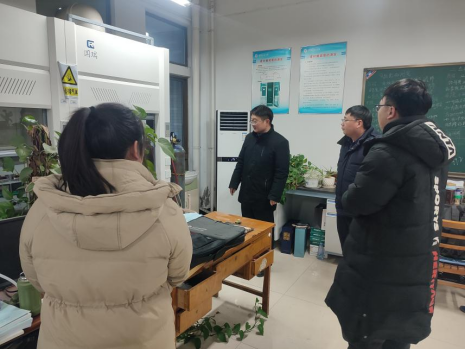 党委书记张虎、副院长方圆、办公室主任门亮、实验中心主任杨志欣等对学院教学、科研实验室进行了全面检查。