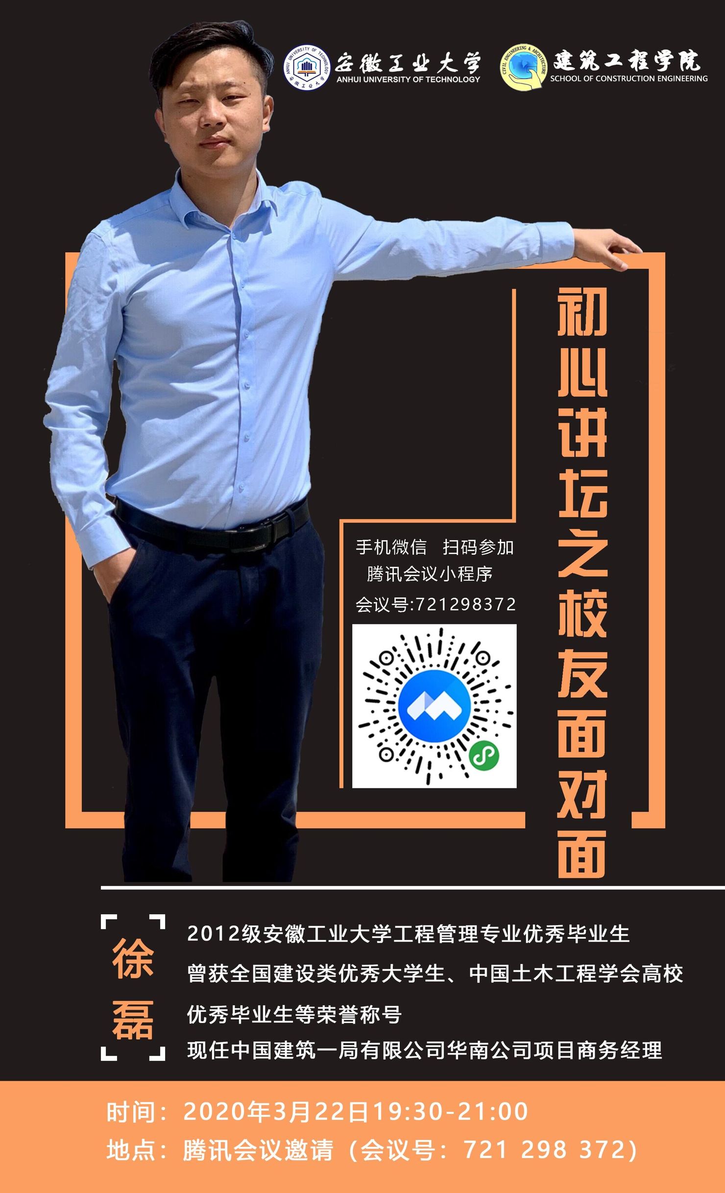 根据学校2020届毕业生就业工作安排,面向学院毕业生开展“初心讲坛之校友面对面”系列线上分享会。3月23日,首期分享会在“腾讯会议”平台开讲,课程邀请了2012级工程管理专业校友徐磊、包容、周健、李旭4名毕业生主讲。分享会由博彩