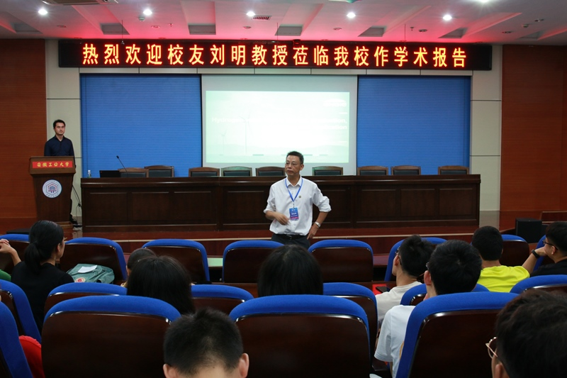 报告题目为氢经济相关的市场展望与氢气的制备与存储技术。报告从氢气的产业链及作为清洁能源的应用前景、氢气的生产过程、氢气的应用、中国氢气能源的开发、氢气的制备、存储及安全性等几方面展开。报告内容理论联系实际,拓展了学生的知识面。报告会后,刘明还与在座的学生分享了他的求学和工作经历,并鼓励学生努力学习、多积累知识,提升自身的综合能力和核心竞争力。