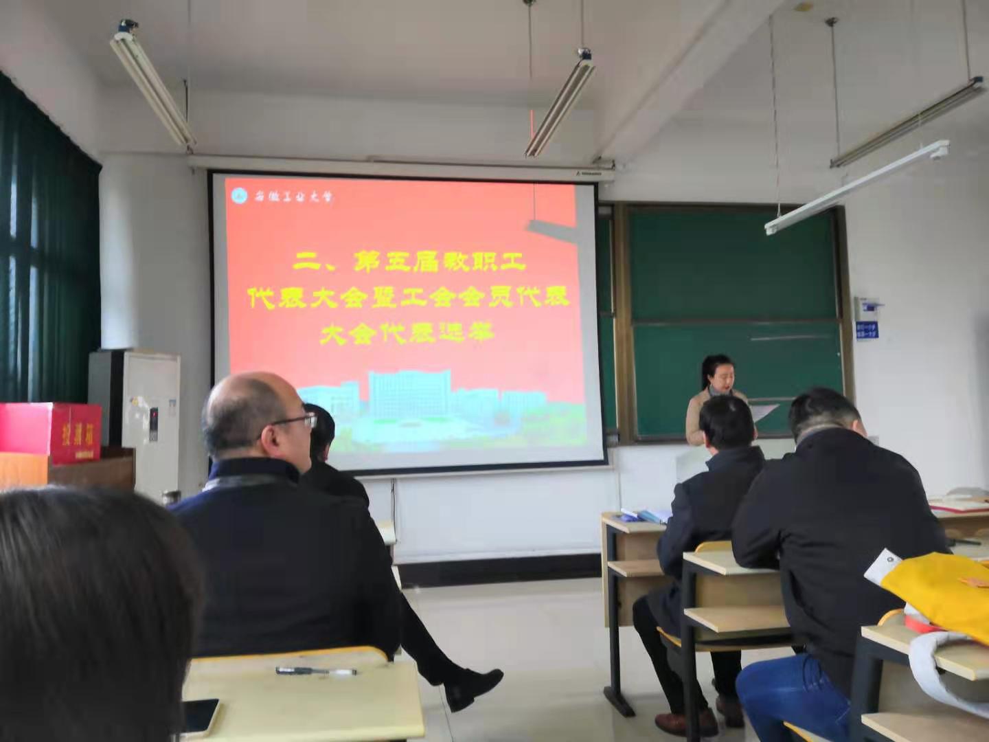 在建工北楼505举行学院出席校第五届教职工代表大会暨工会会员代表大会(简称“双代会”)代表选举大会。学院全体教职工参加,会议由学院副院长王颖之主持。